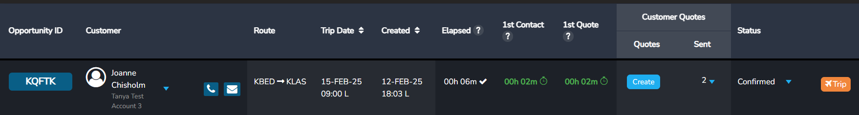 The customer requested to change the confirmed quote to the 2nd option above for $28,000.00. To accomplish this, simply go to the opportunity dashboard, find the opportunity ID and select the highlighted "trip" icon