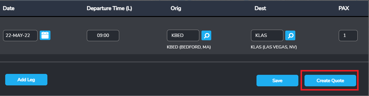 - Select the date of travel and leg information. Click "add leg" to add additional legs to the trip