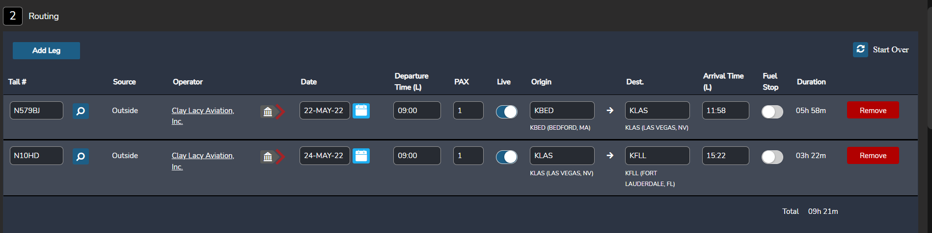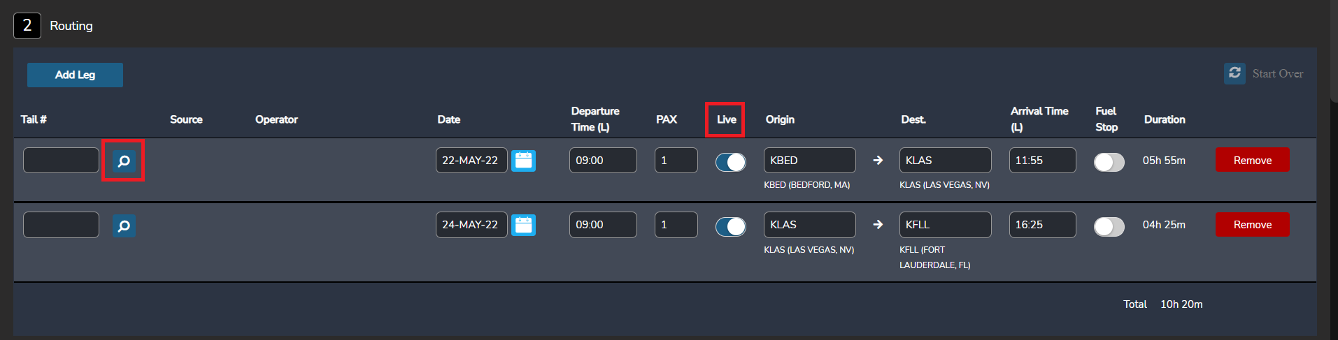 - This will display all of the Operators tails or the specific tail#. This does not mean the selected tail is available. You'd have to verifiy with the operator before selecting. (FlyEasy Sourcing is not yet integrated but will be, the team is actively working on it)