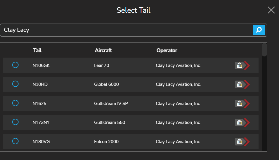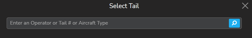 - You can select a tail by Operator, Tail # or Aircraft Type