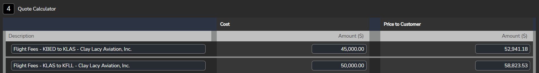 - In this section you will set up the pricing, fees, margin etc. to send to your client.
