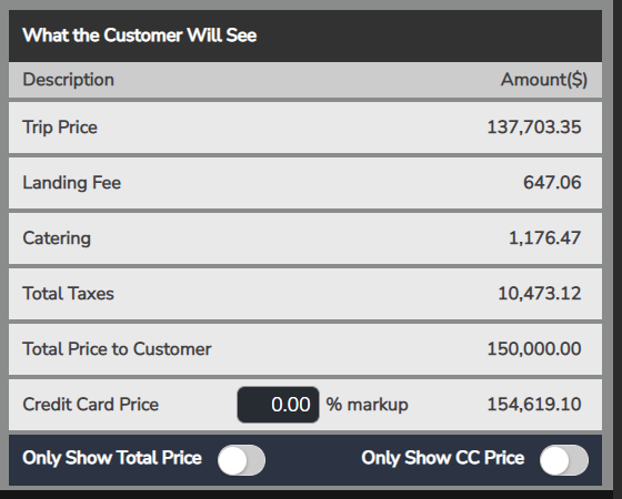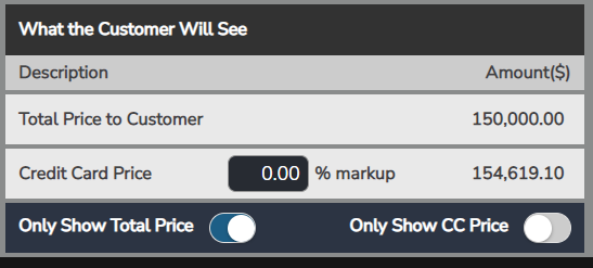 - What the customer will see. You can choose the view you want them to see on the quote- the total price or the credit card price.