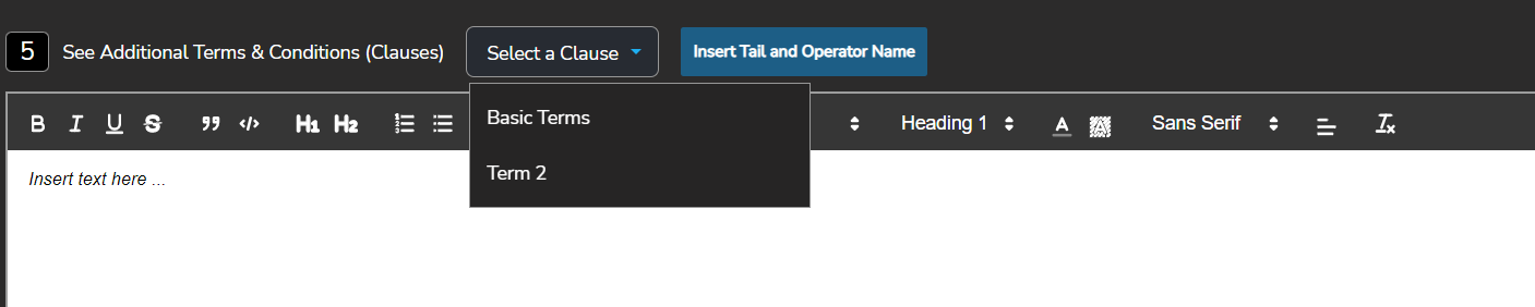 - In this example I have selected the "Terms 2" clause as well as inserted the Tail and Operator Name"