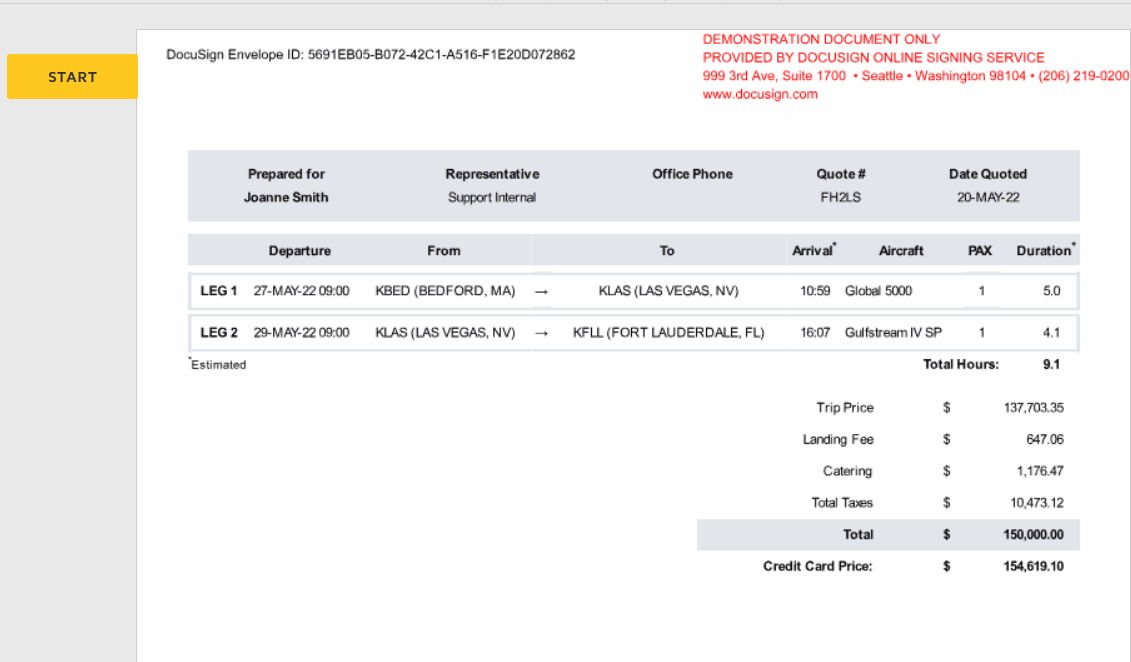 - Clicking "start" will walk them through the quote and require a signature to proceed further.