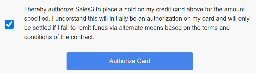 - Payment details are entered including the full credit card#, expiration date (MM/YYYY), CVV2 and billing address. Once all of the appropriate information is entered, they check that they are authorizing the payment and click "authorize card"