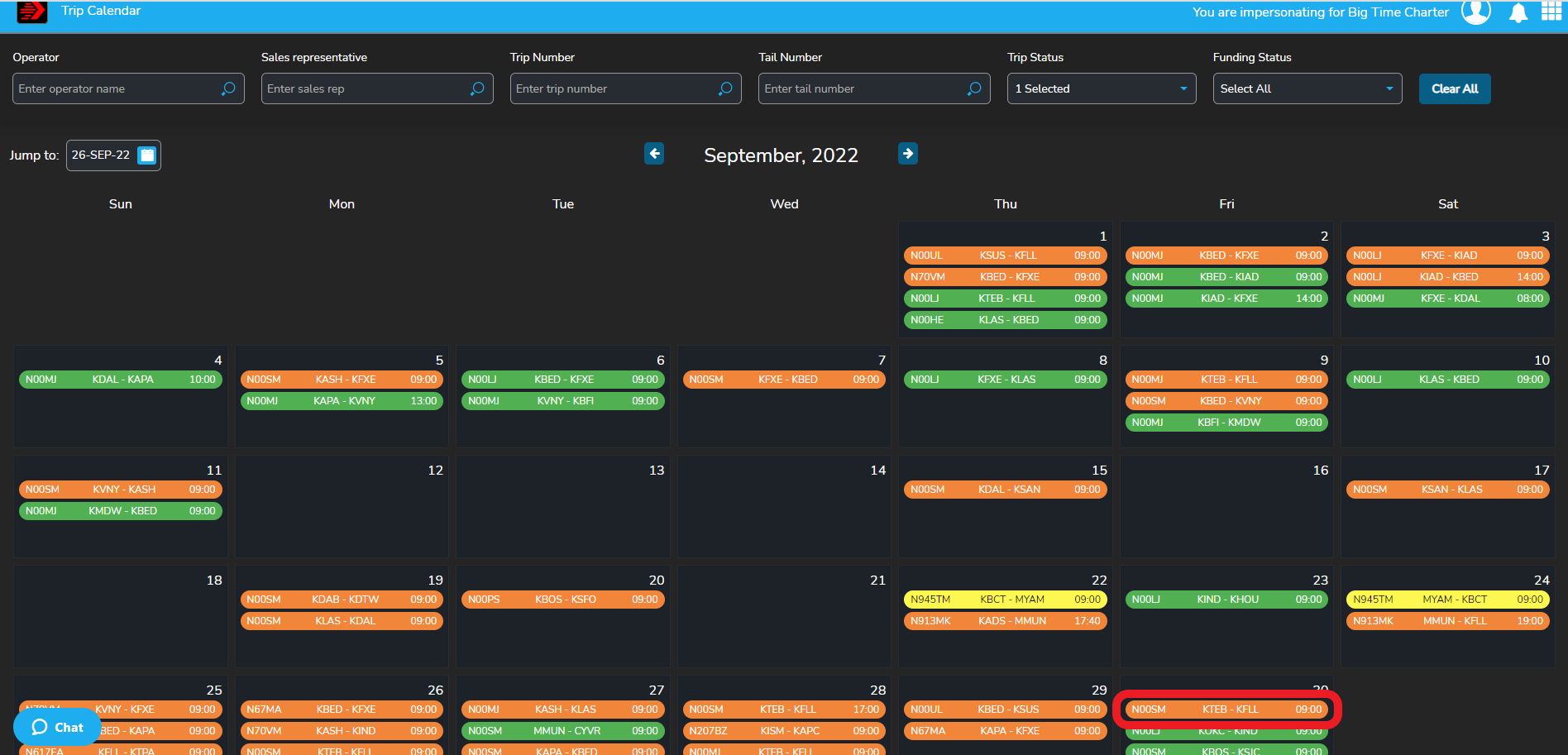 The Trip Calendar will give you a visual representation of all your confirmed trips in a calendar format.