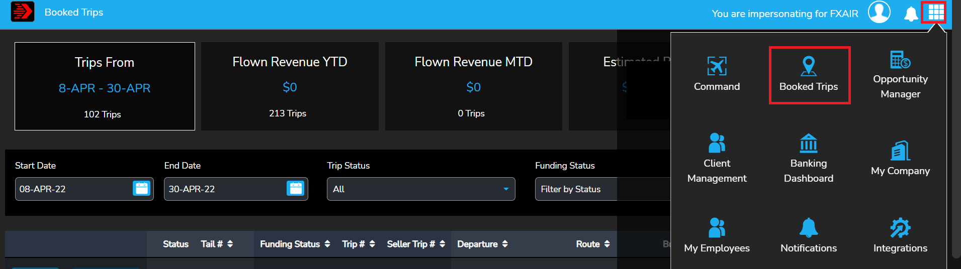 1. From the waffle menu located in the top right-hand corner of your screen, click on "Booked Trips".