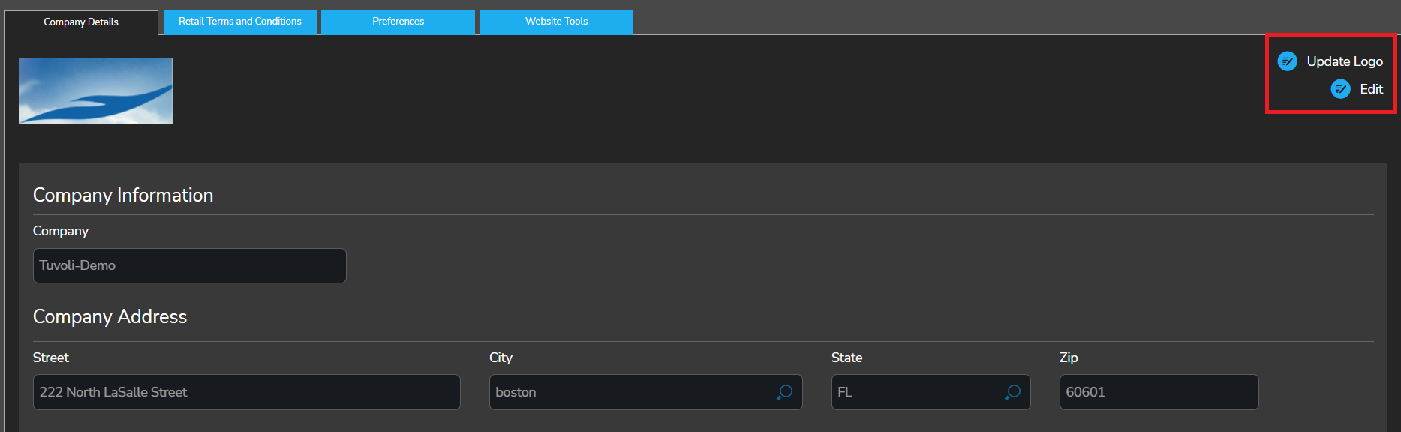 To update the company logo click “update logo”