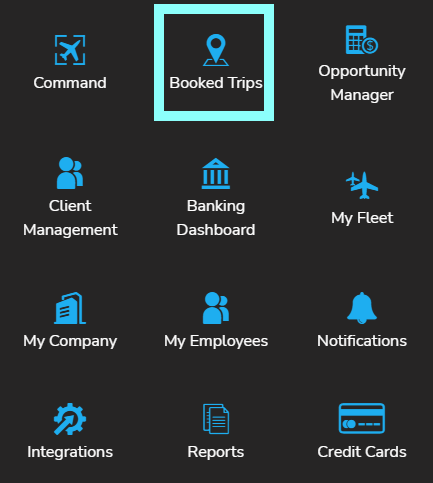1- To access "tasks", click on Booked Trips in the waffle menu, in the top right-hand corner of your screen.