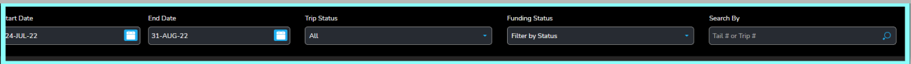 2- Locate the desired trip (searching with date range, trip status, funding status or tail # and/or trip #)